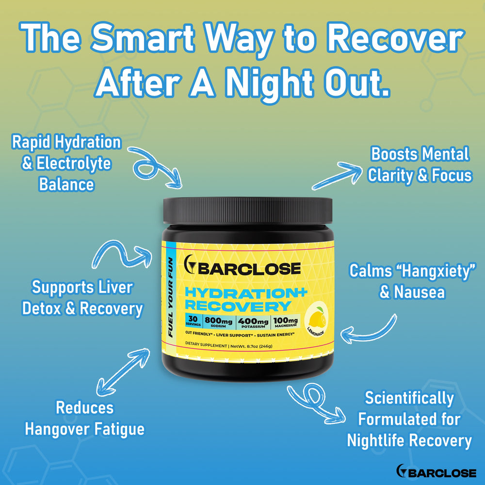 Barclose combines hydration, detox, and recovery support into one formula so you can enjoy the night and still feel great the next day.