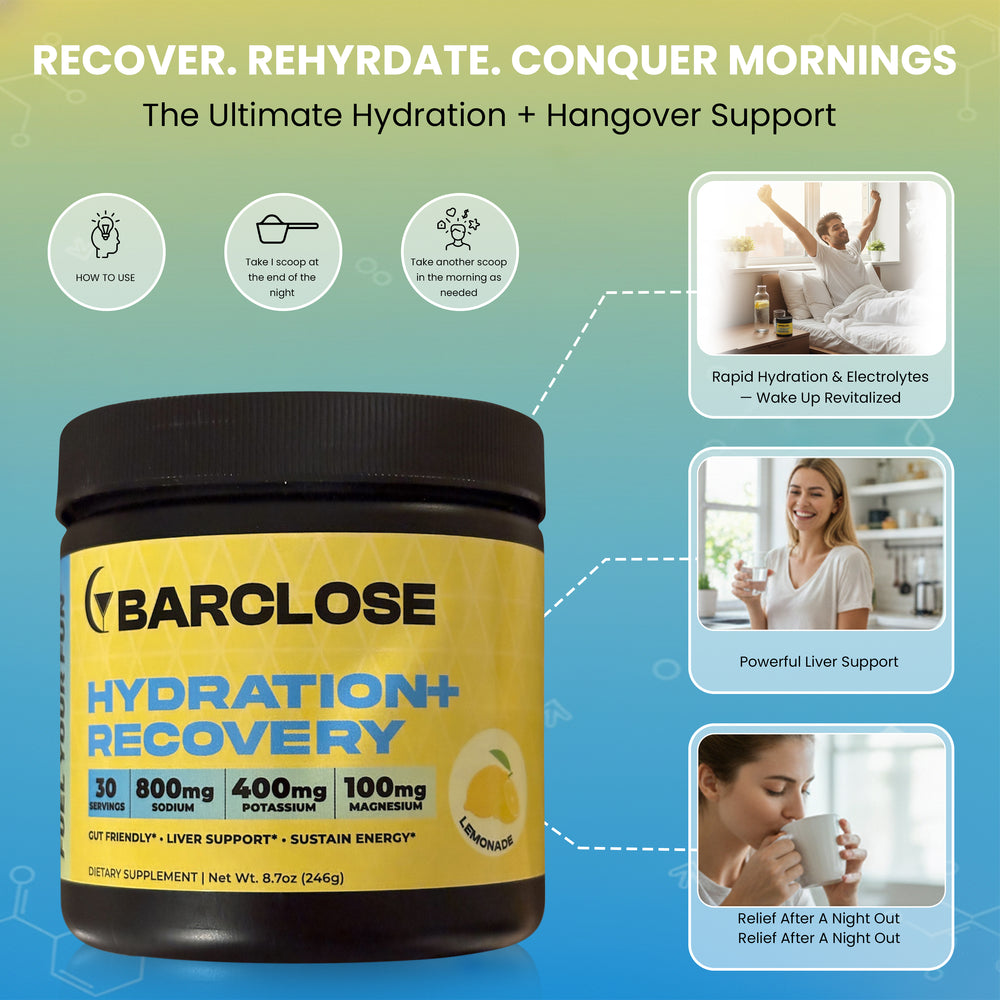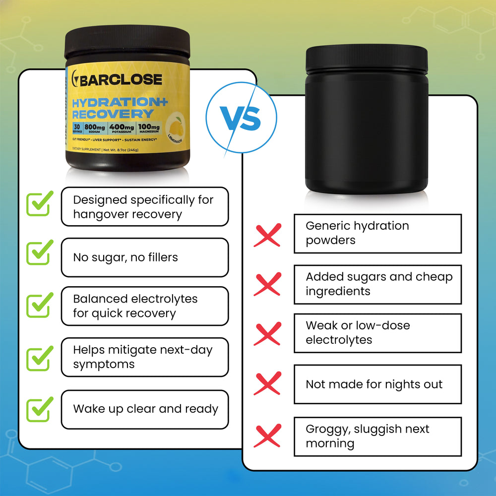 Barclose is built to help you recover smarter, not harder. Each scoop contains clinically backed ingredients proven to support your liver, hydration, and energy levels after a night of drinking.